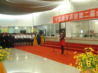 (主持人在現(xiàn)場(chǎng)宣布“寧夏國(guó)芳百貨第二屆合唱”節(jié)開幕)
