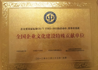 2012年度“全國企業(yè)文化建設(shè)特殊貢獻單位”榮譽獎牌